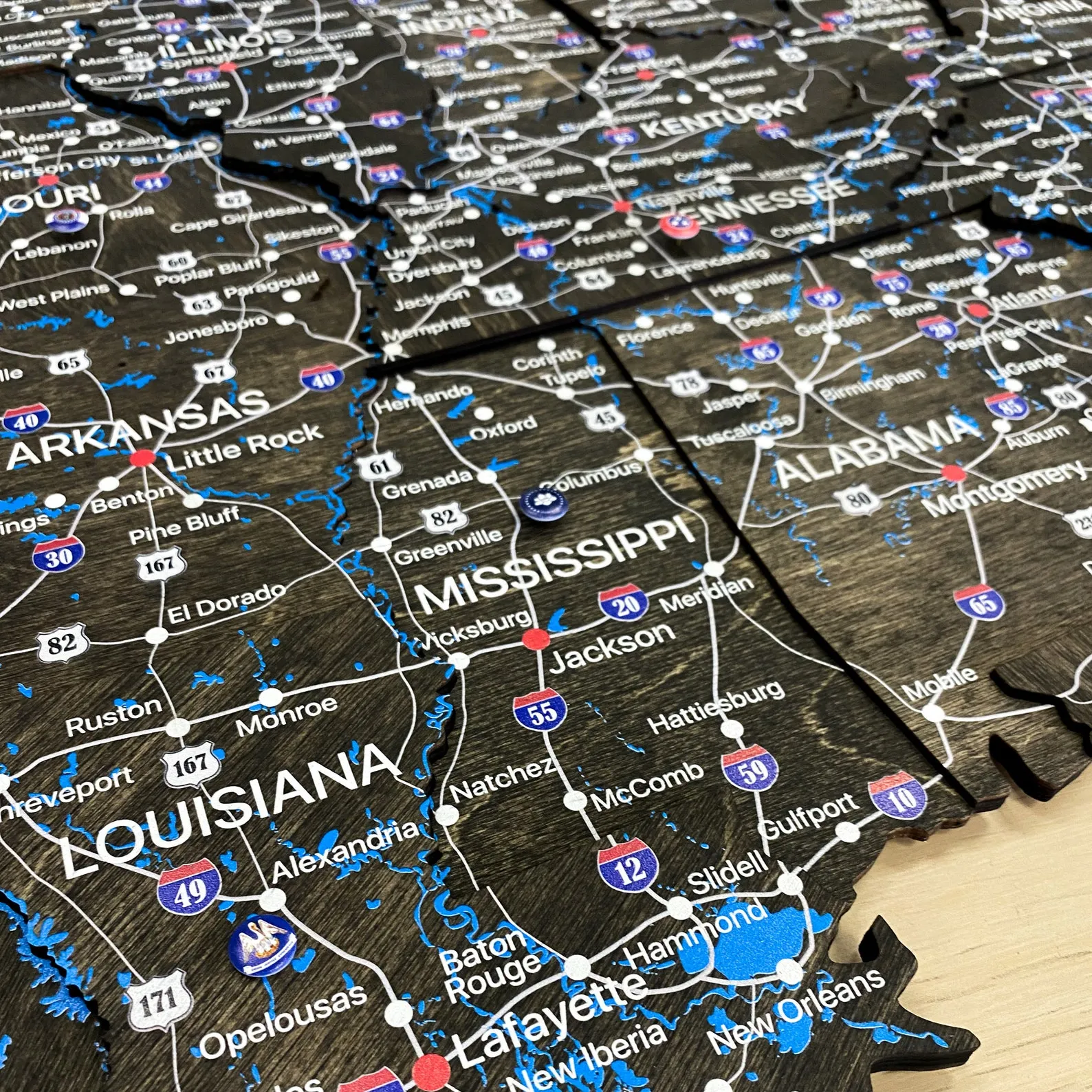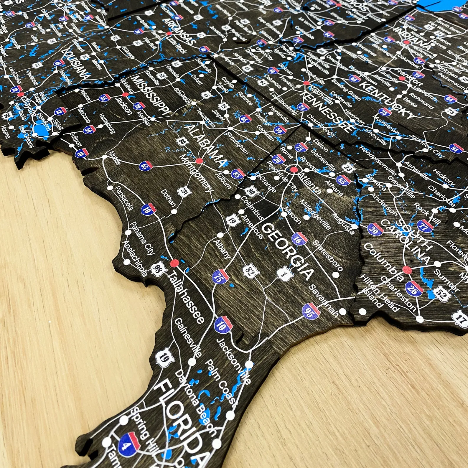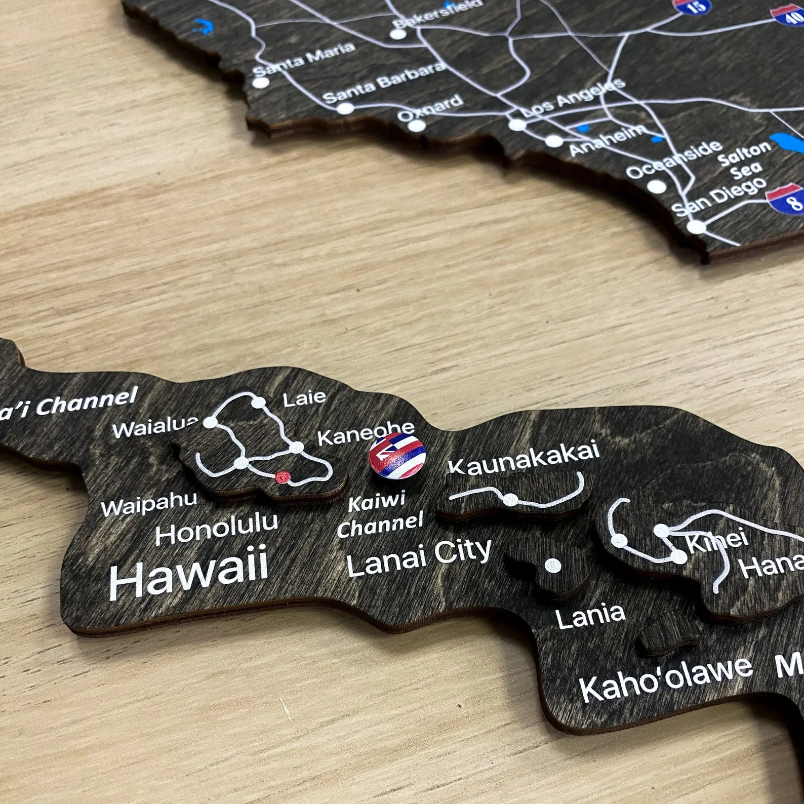 The smooth wooden surface can support push pins if you wish to mark key destinations, business locations or travel routes. Because the design focuses on clarity rather than heavy decoration, the map stays organized even with multiple pins in place. The natural material adds a warm touch compared with printed paper posters.