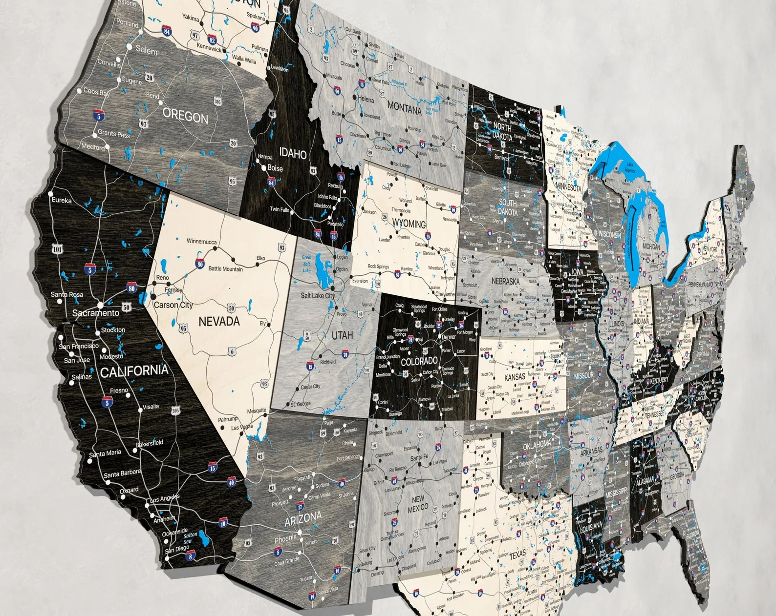 Using standard push pins, you can mark national parks, scenic routes or camping areas you have visited. The map surface is made to support repeated pin placement while keeping the overall layout easy to read. This helps you follow your progress across different regions and plan future journeys in a visual way.