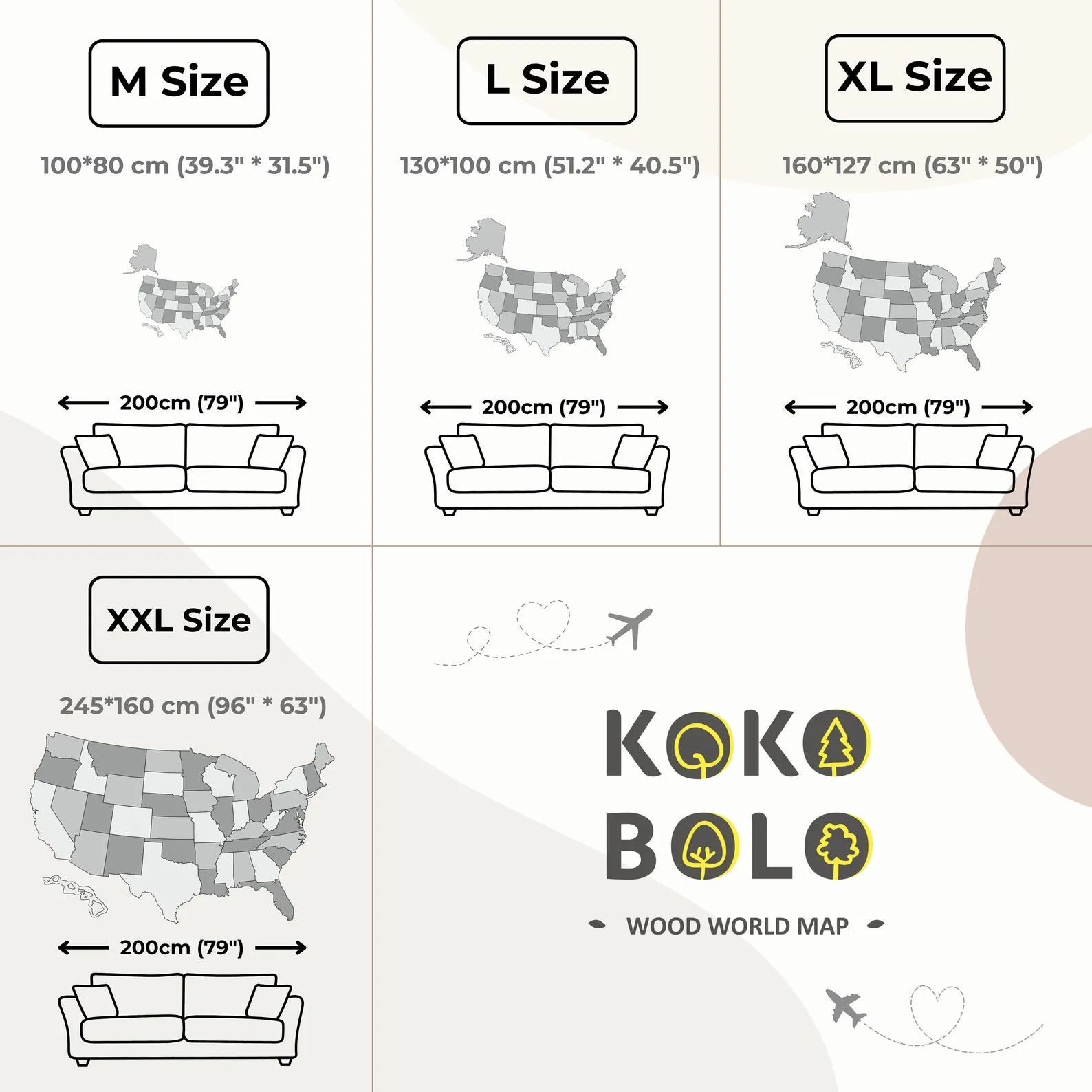 This rustic wooden United States travel map works as a push pin display board and wall decoration. The natural wood texture gives the map a warm look that suits country style, farmhouse and casual modern interiors. State borders are clearly shown, creating an easy to read view of the country for everyday travel planning.